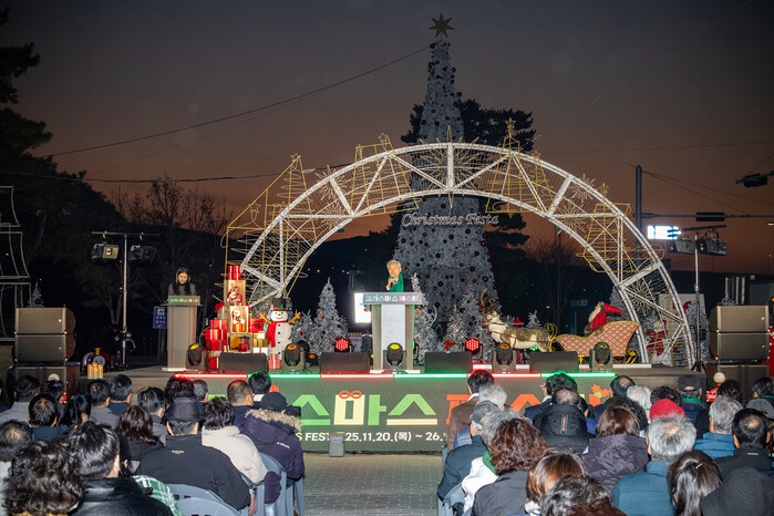 점등식은 계수중학교 댄스동아리 ‘텐션’의 활기찬 식전 공연으로 문을 열었다. 트리마을의 불빛이 일제히 켜지는 순간 시민들은 환호와 감동으로 하나가 됐으며, 축제 분위기는 절정에 달했다.