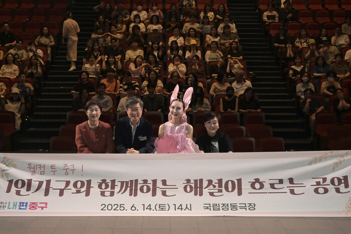 [시민일보 = 여영준 기자] 서울 중구(구청장 김길성)가 지난 14일 오후 2시 국립정동극장에서‘1인가구와 함께하는 해설이 흐르는 공연’을 개최했다.