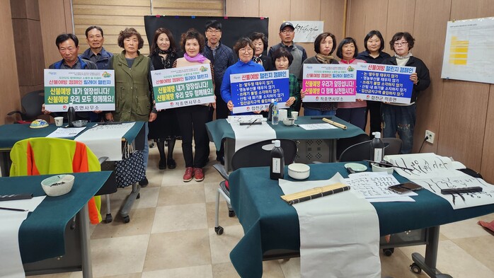 캘리그라피 교실의 한 수강생은 “지역신문을 통해 챌린지 캠페인을 알게 됐으며, 산불예방에 뜻을 함께 한다는 의미로 반우들과 함께 참여하게 됐다. 의미있는 행사에 동참할 수 있어 기쁘다”고 말했다.