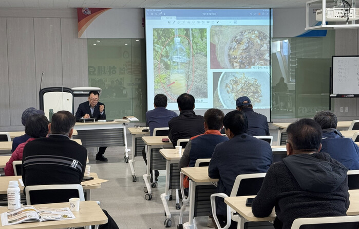 이번 ‘품목별 상설교육’은 복숭아연구회 회원들이 농한기를 이용해 해충 관리 교육을 요청함에 따라, 해충 관리 전문가인 생태도시연구소 이기상 박사를 초빙해 맞춤형 교육을 진행했다.