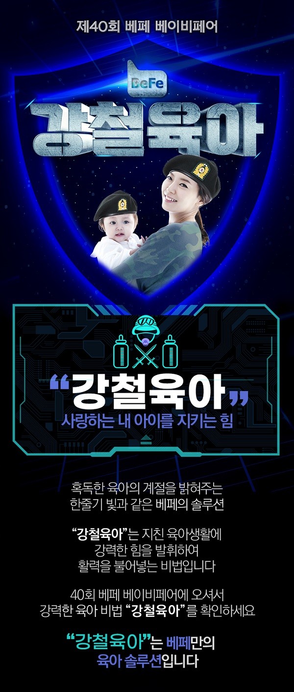매회 육아 트렌드를 반영한 전시 테마로 화제가 됐던 베페는 이번 40회에서는 코로나19로 인해 혹독한 육아의 계절을 겪고 있는 상황에서 다양하고 우수한 품질의 유아용품으로 사랑하는 내 아이를 안전하게 지킨다는 의미인 ‘강철육아’를 테마로 삼아 전시회를 기획했다.