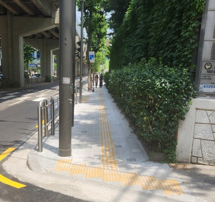 또한 횡단보도 등의 단차를 최소화하고, 미설치된 구간이 없도록 점자블록을 연결해 보행 약자들도 안전하게 통행할 수 있도록 보행환경을 개선했다.