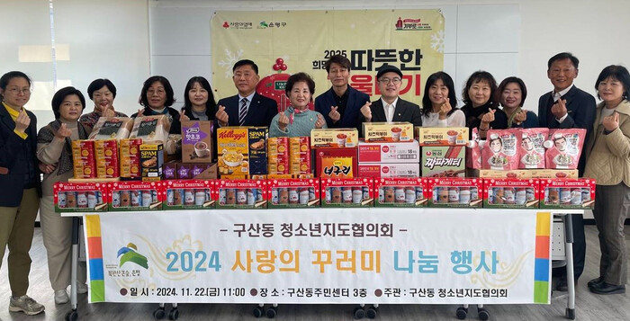 박재균 구산동장은 “식품 꾸러미를 정성껏 준비해 준 청소년지도협의회 위원에게 감사하다”며 “청소년들이 밝고 건강하게 성장해 미래를 이끌 수 있도록 응원하며 지원에 최선을 다하겠다”고 밝혔다.