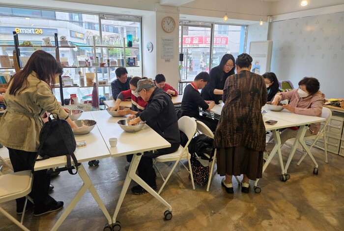 | ▲ 서대문구의 ‘시각장애인과 함께하는 커피박 새활용’ 강의 (사진=서대문구청 제공) |