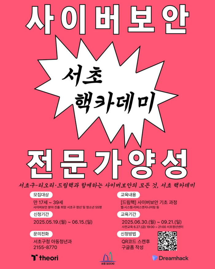 | ▲ 사이버 보안 ‘서초 핵카데미’ 홍보 포스터. (사진=서초구청 제공) |