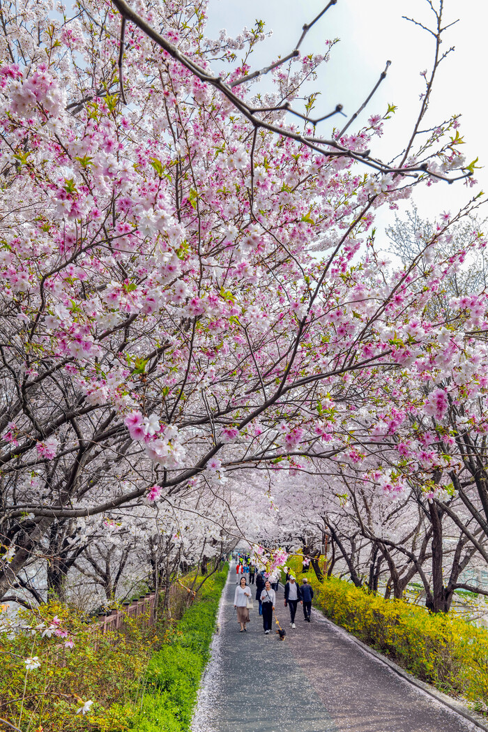 [시민일보 = 이대우 기자] 서울 동대문구(구청장 이필형) 장안벚꽃길에 만개한 벚꽃을 보며 주민들이 봄기운을 만끽하고 있다.