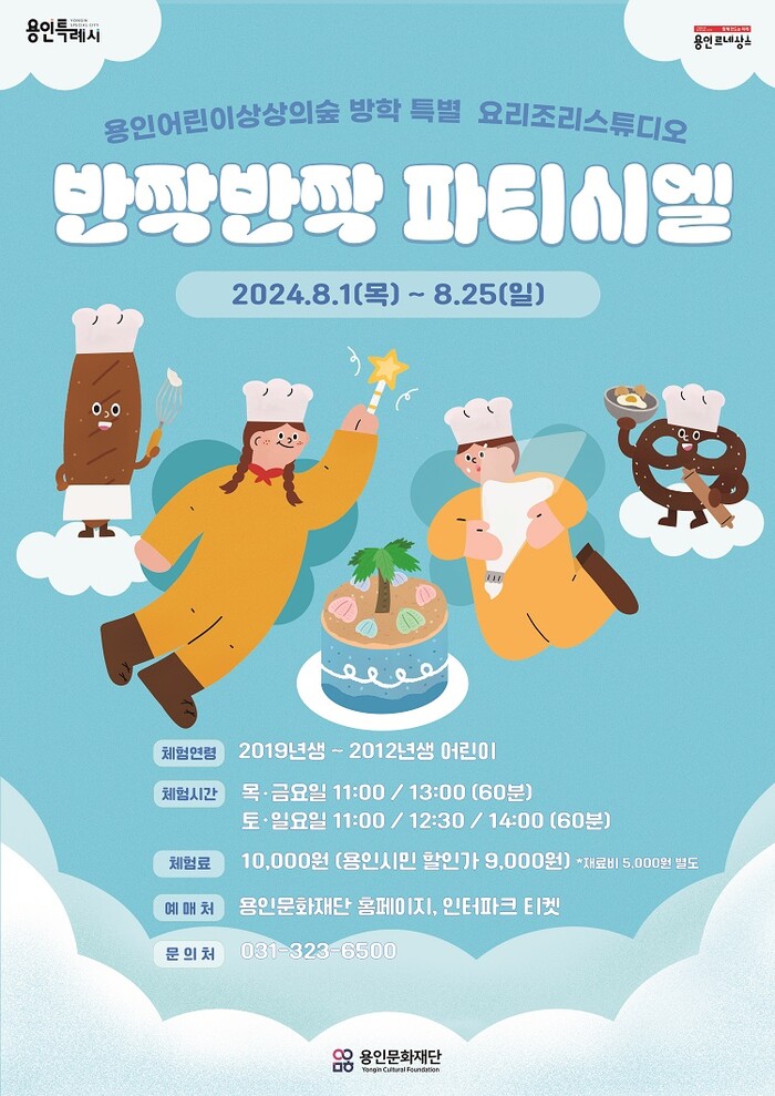 [용인=오왕석 기자] 용인문화재단(이사장 이상일)은 용인어린이상상의숲 요리조리스튜디오에서 진행하는 여름방학 맞이 어린이 베이킹 체험 프로그램 ‘반짝반짝 파티시엘’의 예매를 오는 26일 오후 2시에 오픈한다.