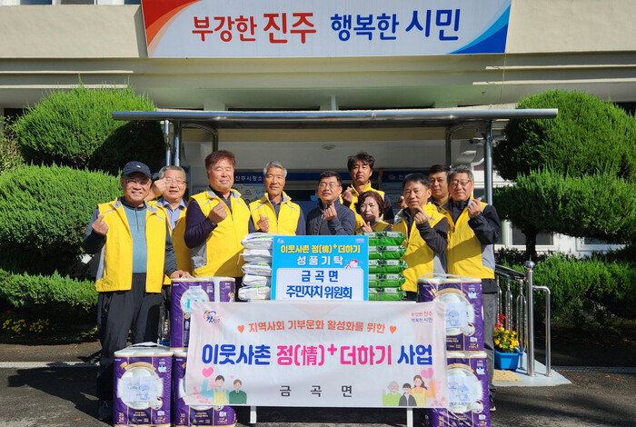 진주시 금곡면 주민자치위원회(위원장 백석현)는 23일 ‘이웃사촌 정 더하기 사업’을 전개하여 복지사각지대 가정에 쌀을 비롯한 생필품(30만 원 상당)을 전달했다.