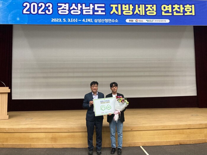 소에서 열린 '2023년 경남 지방세정 연구과제 발표회'에서 우수상을 수상했다고 8일 밝혔다.