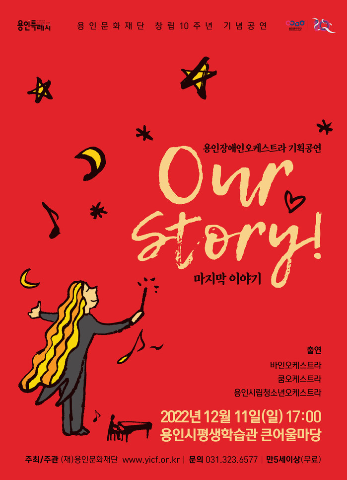이번 공연은 용인에서 활동하는 장애인오케스트라인 쿰오케스트라, 바인오케스트라와 함께 용인시립청소년오케스트라가 ‘When you wish upon a star’, ‘Ode to Joy’, ‘Christmas Festival’ 등의 프로그램을 단체별 개별무대와 합동무대를 통해 공연장을 찾은 관객들에게 따뜻한 연말을 선보일 예정이다.