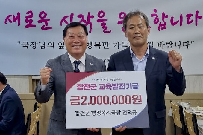 이날 전덕규 행정복지국장은 “그간의 공직생활을 마무리하는 자리에서 그동안 격려와 힘이 되어주었던 동료 공직자들께 감사의 마음을 전하고 백년지대계인 합천의 교육발전에 조금이나마 도움이 되길 바라는 마음에 기탁을 하게 됐다”고 소감을 전했다.