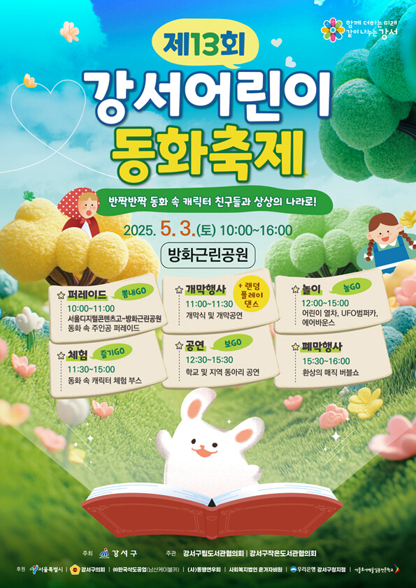 [시민일보 = 박소진 기자] 서울 강서구(구청장 진교훈)가 오는 3일 방화근린공원에서 ‘제13회 강서어린이 동화축제’를 개최한다고 밝혔다.