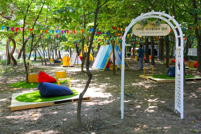| ▲ 양재천근린공원 야외 캠핑형 무더위쉼터. (사진제공=서초구청) |