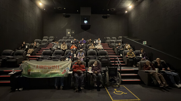 문화체험 프로그램인 『우리 영화 보러 갈까요?』는 치매환자와 가족이 일상 속에서 문화 활동을 경험하며 정서적 안정을 도모할 수 있도록 마련된 프로그램으로, 이번 영화 관람은 매월 1회 운영되는 치매가족 자조모임 참여자뿐만 아니라 치매 환자와 보호자들도 함께해 더욱 의미 있는 시간이 되었다.