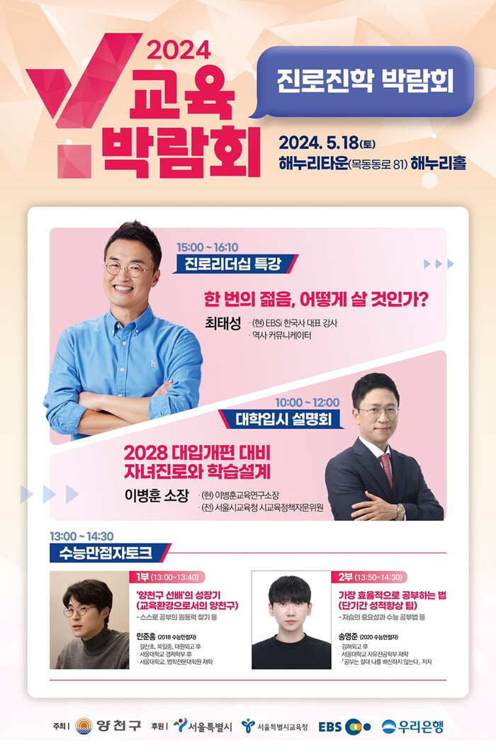 | ▲ Y교육박람회 2024 진로진학박람회 대학진학설명회 및 특별강연 홍보 포스터 (사진=양천구청 제공) |