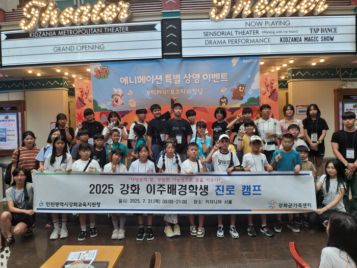 [인천=문찬식 기자] 인천강화교육지원청(교육장 한기선)은 7월 31일 관내 이주 배경 초·중학생 33명을 대상으로 키자니아 서울에서 ‘다양성의 빛, 무한한 가능성으로 꿈을 키우다’를 주제로 ‘2025 강화 이주배경학생 진로 체험 캠프’를 운영했다.