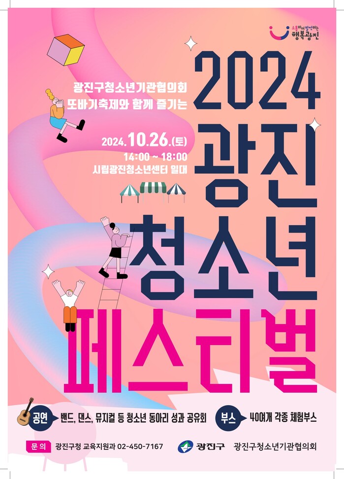 [시민일보 = 여영준 기자] 서울 광진구(구청장 김경호)가 오는 26일 시립광진청소년센터 일대에서 ‘2024 광진 청소년 페스티벌’을 개최한다.