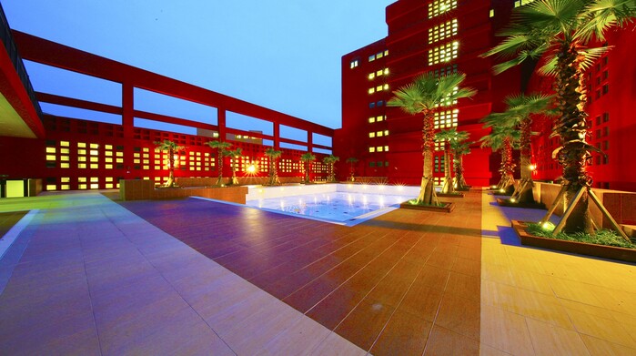 제주부영호텔&리조트의 야외수영장(A)은 이국적인 오렌지색 건물과 야자수가 어우러진 풍경으로 SNS에서 인기를 얻고 있다. 휴양지 느낌이 물씬 풍기는 곳으로, 실제로 “외국으로 휴가를 온 것 같다는 기분이 든다”는 투숙객들의 후기가 올라오는 등 많은 관심을 받고 있다.