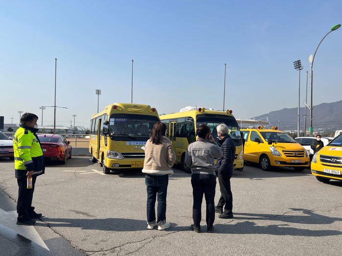 경기 포천시는 지난 7일 어린이 통학버스 안전점검을 실시했다. 올해 상반기 점검은 지역내 어린이집 등 어린이 통학버스를 대상으로 진행했으며, 어린이 통학버스 신고 운행 등을 점검했다. 사진은 이날 관계자들이 어린이 통학버스를 점검하고 있는 모습. (사진제공=포천시청)