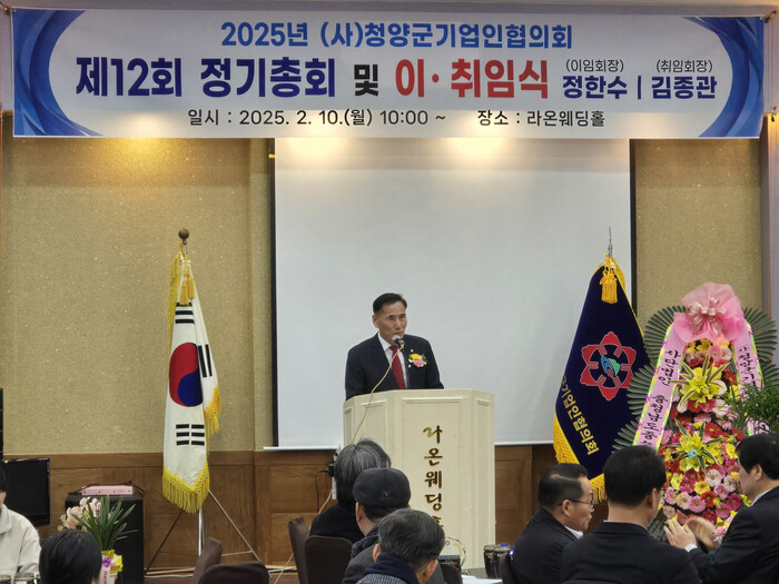 취임한 김종관 회장(제일레미콘(주) 대표)는 “정한수 회장의 그동안의 노고에 깊은 감사를 드린다”며 “앞으로도 청양군 기업인 여러분들을 위해 협의회 운영에 최선을 다하겠다”고 밝혔다.