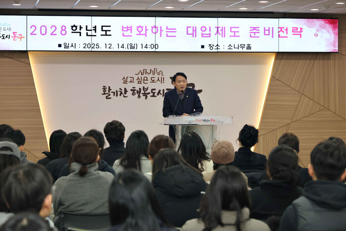 김찬진 동구청장은“이번 설명회는 학생과 학부모들이 변화하는 입시 제도를 정확히 이해하고, 막연한 불안을 해소하는 데 의미 있는 시간이 됐을 것”이라며“앞으로도 학생들의 진로·진학 역량을 높이고 학부모의 자녀 교육 고민을 함께 나누는 프로그램을 지속적으로 운영하겠다”고 말했다.