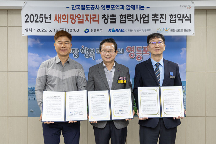 ‘새희망일자리’는 2019년부터 구와 영등포역, 옹달샘드롭인센터가 3자 협약을 맺고 추진 중인 민‧관 협력 사업으로, 노숙인에게 일자리와 자활의 기회를 제공한다. 코로나19와 경기 침체 등 어려운 시기에도 중단 없이 이어가며, 참여자들에게 경제적 자립의 디딤돌이 되어왔다.