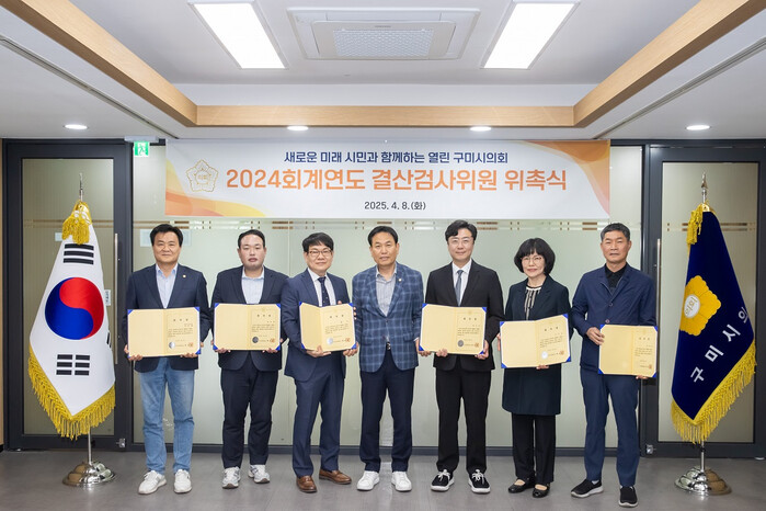 2024 회계연도 결산검사위원은 제285회 구미시의회 임시회 제2차 본회의에서 최종 선임되었으며, 선임된 결산검사위원은 대표위원인 김영태 시의원과 정지원(시의원), 배일(회계사), 박호진(세무사), 이수정·최성국(전직 공무원) 등 총 6명이다.
