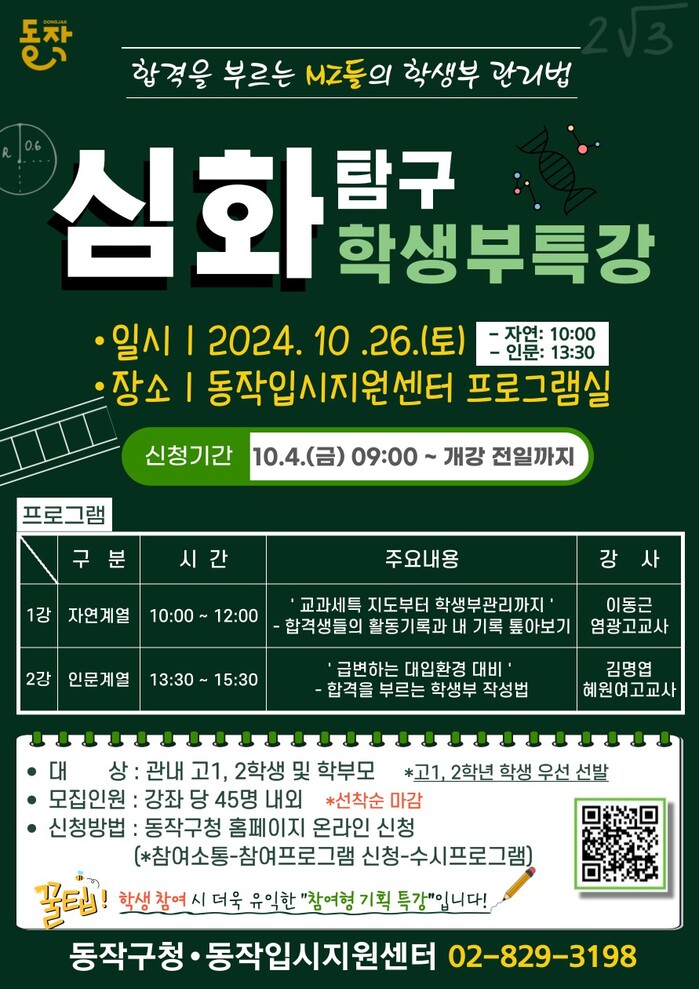 학생부 특강 관련 기타 자세한 사항은 동작입시지원센터로 문의하면 된다.