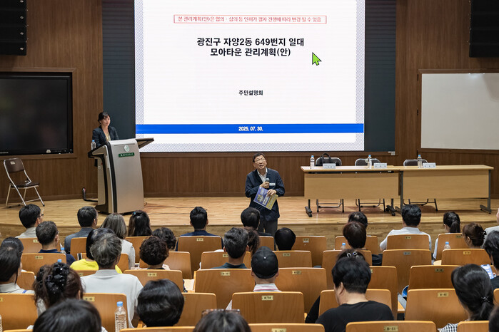 [시민일보 = 여영준 기자] 광진구(구청장 김경호)가 지난 30일, 자양2동 649번지 일대 모아타운 관리계획(안) 주민설명회를 개최했다.
