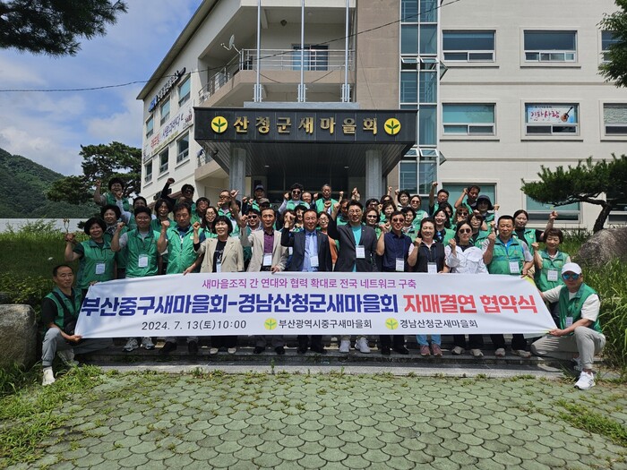 협약식에는 산청군새마을회와 중구새마을회 관계자 등 50여명이 참석해 지역사회 공헌 활동 공동 추진과 각 지역 특산물 교류 판매 등을 약속했다.