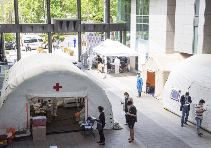 | ▲ 2020년 5월 확장된 보건소 선별진료소. (사진=용산구청 제공) |