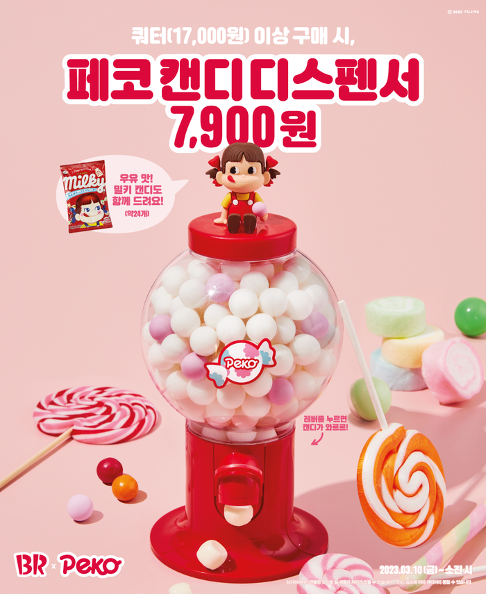 [시민일보 = 이대우 기자] SPC 배스킨라빈스가 캐릭터 ‘페코’와 손잡고 출시한 3월 이달의 맛을 기념해 ‘페코 캔디 디스펜서’를 굿즈로 선보이고, 특별 프로모션을 진행한다고 9일 밝혔다.
