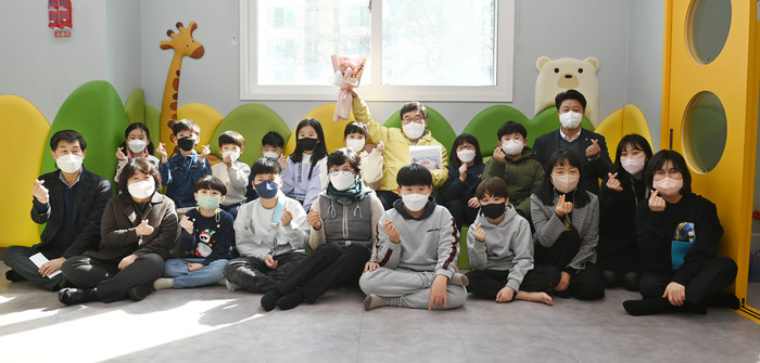 신동헌 경기 광주시장이 지난 22일 복지·교육 민생 현장 방문에 나섰다. 이날 신 시장은 다함께 돌봄센터 1호점과 청소년 수련관을 둘러보면서 현장점검 및 운영상황을 살피고 각종 애로사항을 청취했다. 사진은 돌봄센터를 찾은 신 시장(뒷줄 왼쪽 일곱 번째)이 아이들과 기념촬영을 하는 모습. (사진제공=광주시청)