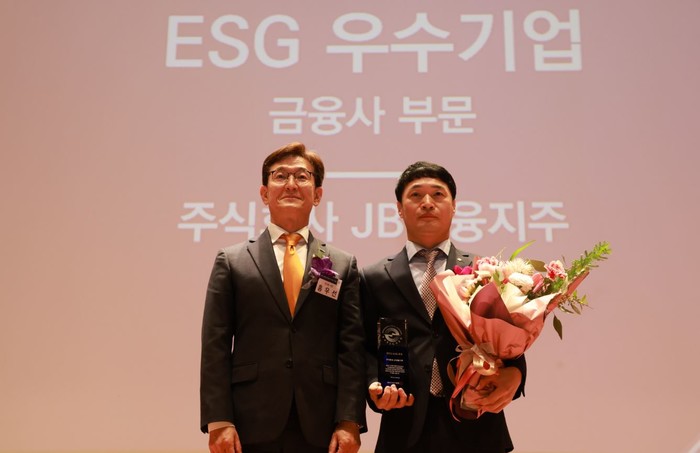 ESG 우수기업은 한국ESG기준원(KCGS)이 지난 2011년부터 상장기업의 환경경영(Environment), 사회책임경영(Social), 지배구조(Governance)와 같은 비재무적 수준을 종합적으로 평가해 선정하는 것으로 올해는 전체 1,033개 기업을 대상으로 평가를 실시했으며, JB금융지주는 ESG 평가 결과 환경 부문에서 A, 사회 부문에서 A+, 지배구조 부문에서 A등급을 받아 통합등급 A를 부여받았다.