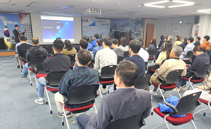 진주시는 23일 시청 3층 문화강좌실에서 밀폐공간 관리부서 담당자와 공무직, 용역업체 관계자 등 70명을 대상으로 밀폐공간 질식재해 예방 교육을 실시했다.