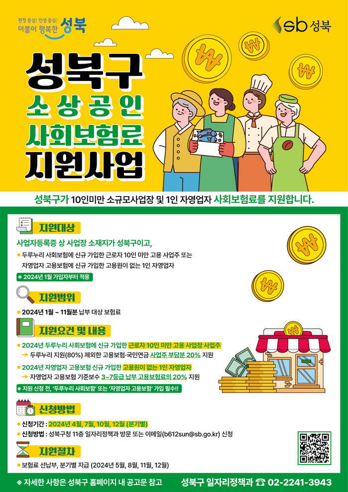 [시민일보 = 변은선 기자] 서울 성북구(구청장 이승로)가 오는 7월11~19일 2024년 '성북구 소상공인 사회보험료 지원사업' 2분기 신청 접수를 실시한다.