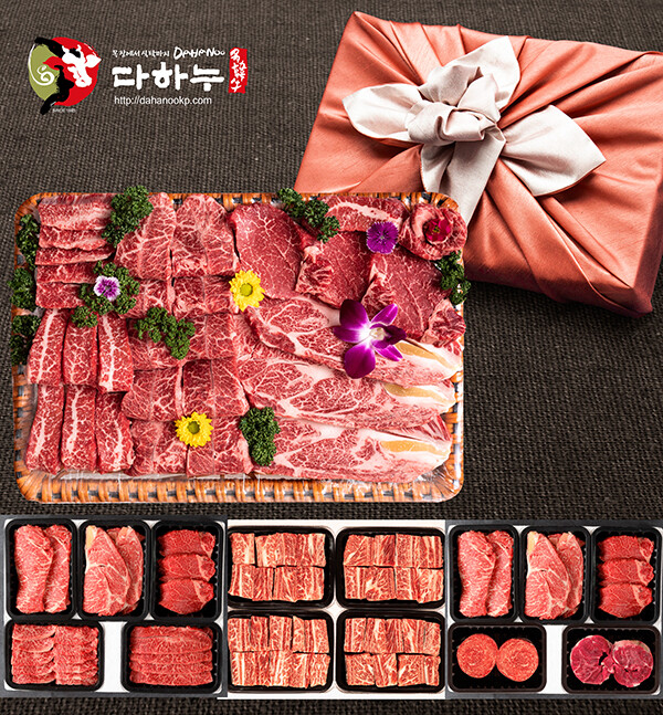 등바구니에 담아 고급스러움을 더해 상견례와 거래처 등 VIP 선물용으로 선호도 높은 ‘으뜸세트’를 비롯해 ▲등심, 안심, 채끝, 특수부위를 가격대별로 구성한 ‘명품특가세트’ ▲국거리, 불고기, 등심, 찜갈비, 다짐육(종합 3호기준) 등 가장 선호하는 부위로만 구성된 ‘종합선물세트’ ▲명품 한우만을 선별해 만든 프리미엄 ‘불고기세트’는 다하누촌의 한우선물세트 중 가장 인기 있는 제품이다.