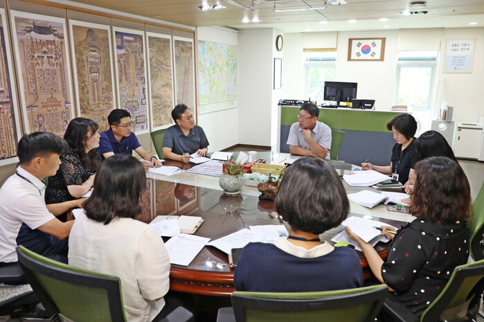 경기 수원시 팔달구가 15일 2026년 팔달구의 주요 업무계획 논의를 위한 보고회를 개최했다. 이번 팔달구 업무보고회에서는 올해 부서별 주요 사업 추진 현황을 공유하고, 2026년 핵심 사업과 추진 방향에 대해 논의했다. 사진은 이상균 구청장이 참석자들과 의견을 나누고 있는 모습. (사진=팔달구청 제공)