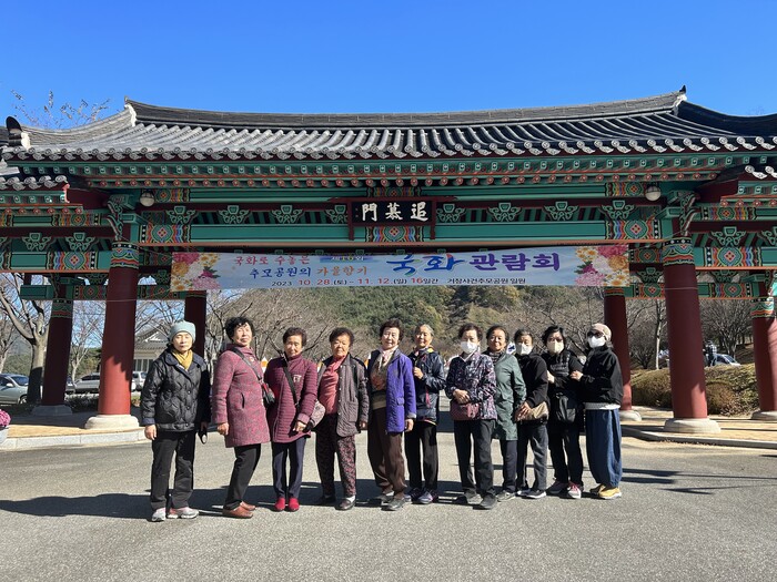 이번 성인문해교실 어르신(상부,황정마을)들은 이날 국화꽃을 보고 단체사진도 찍으며 즐거운 시간을 가졌다.