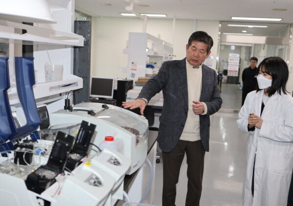 | 최계운 이사장과 직원들이 환경연구소에서 환경자료 데이터화를 점검하고 있다. (사진=인천환경광단) |