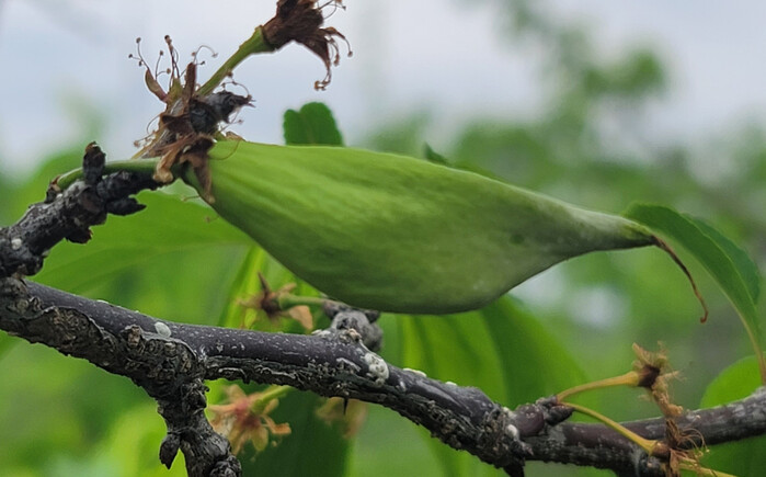 자두 주머니병은 결실 초기에 열매 속이 비고, 주머니처럼 길쭉하게 커지다가 표면에 흰가루가 묻어 있는 것처럼 보이면서 과실이 말라 떨어지는 병으로 자두 수량 감소에 영향을 끼친다.