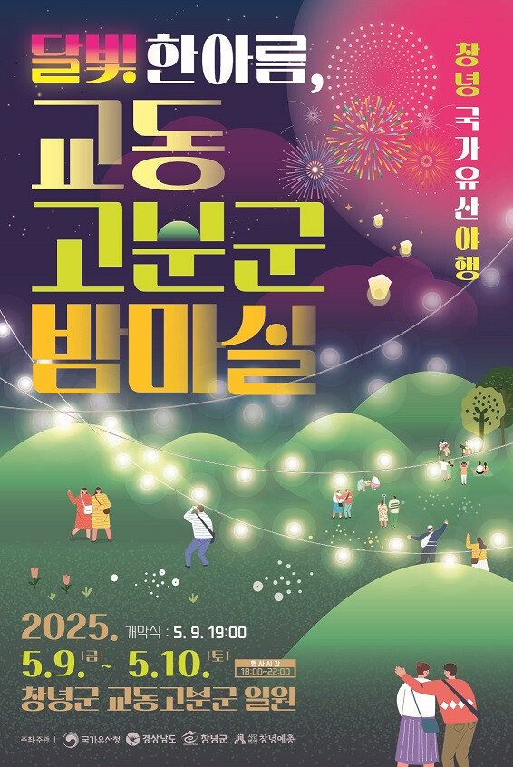 (사)한국예술문화단체총연합회 창녕지회 하동칠 회장은 “야간 경관조명으로 빛나는 국가유산 앞에서의 사진 한 장은 가정의 달 5월, 특별한 추억이 될 것”이라며 “달빛 가득한 고분군으로 발걸음을 옮겨보시길 바란다”고 전했다.