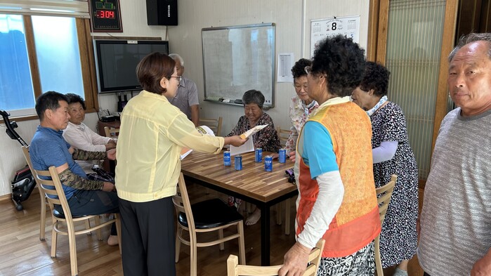박은숙 면장은 “앞으로도 지속적인 점검과 관찰을 통해 폭염에 취약한 어르신들이 건강하고 안전하게 여름을 보낼 수 있도록 최선을 다하겠다”며 “온열질환 예방 행동요령을 준수해 폭염 피해 예방 및 건강관리에 각별히 유의해주시길 바란다”고 전했다.