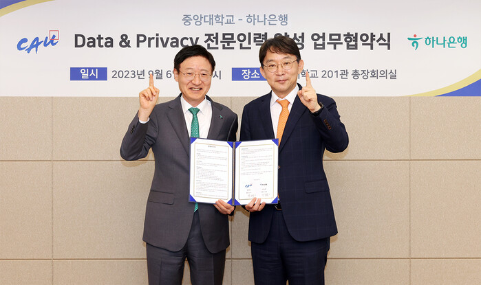 이승열 하나은행장은 “디지털, 데이터 분야를 선도하고 있는 하나은행과 중앙대학교가 데이터 맞춤형 인재 양성을 위한 첫걸음을 함께 한다는 점에서 의미가 크다”며, “양사는 이번 협력을 통해 앞으로 금융 데이터 전문 인력을 양성하고 활발한 기술교류를 바탕으로 새로운 비즈니스 인사이트를 도출할 수 있을 것으로 기대된다”고 밝혔다.