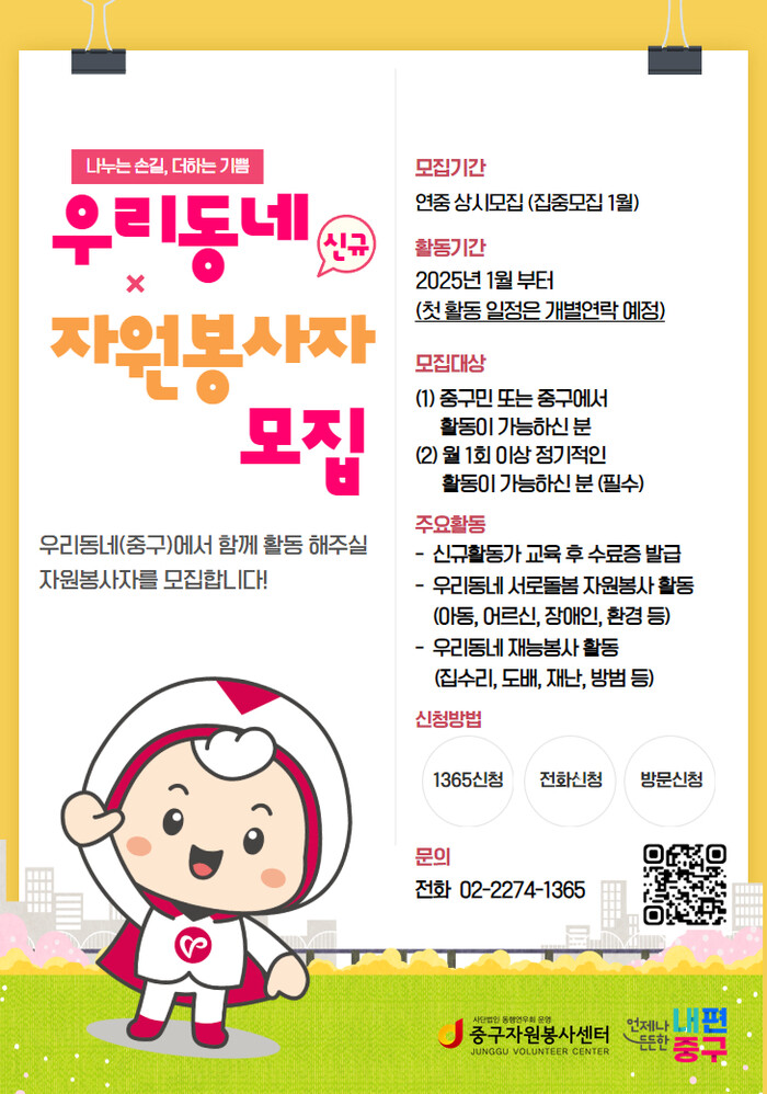 | ▲ 권역별 자원봉사자 모집 포스터. (사진=중구청 제공) |