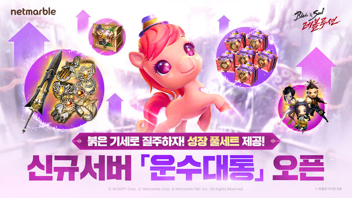 넷마블은 신규 및 복귀 이용자를 위한 점핑 서버 ‘운수대통’을 추가했다. 해당 서버에서는 시작과 동시에 고속 성장이 가능하도록, 역대 최고 수준의 서버 보상을 제공한다.