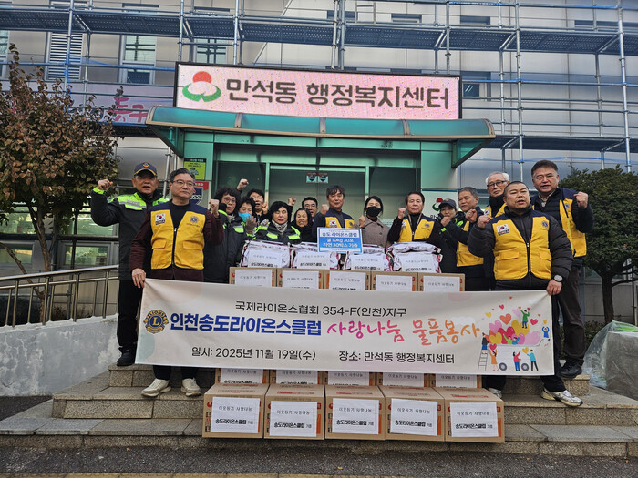 이은주 만석동장은 “사랑의 온기를 채워준 송도라이온스클럽에 깊이 감사드리고, 기탁한 물품은 도움이 필요한 가정에 신속히 전달하겠다”며“어려운 이웃들이 따뜻하게 겨울을 보내는데 큰 힘이 될 것”이라고 말했다.