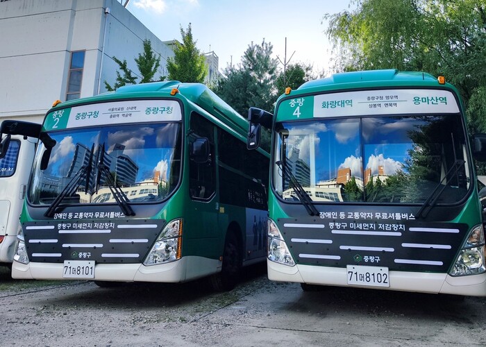 [시민일보 = 여영준 기자] 중랑구(구청장 류경기)가 관용 대형버스 5대에 미세먼지 저감 필터를 시범 설치해 운행에 나선다.