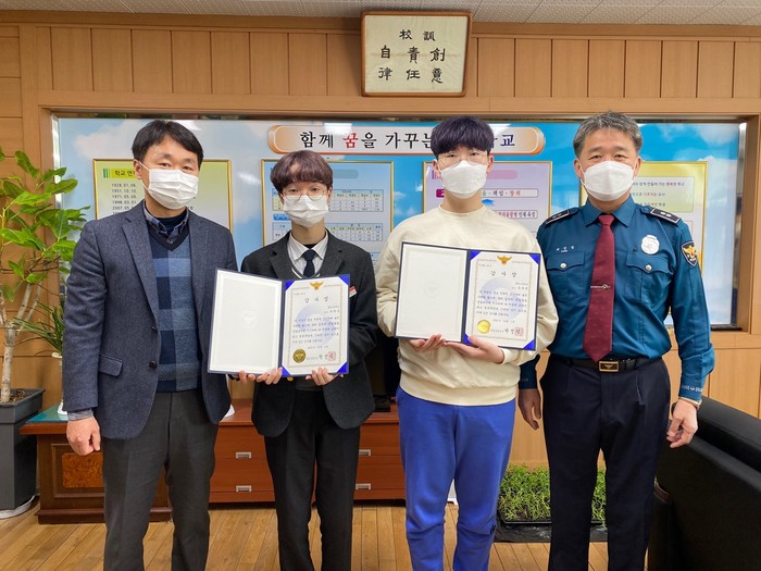 모범선행 고등학생들은 지난달 25일 방과후 귀가 중 도로상에서 현금 10만원이 든 지갑을 발견하고 주저없이 경찰서로 신고하여 분실자에게 안전하게 인계하여 지역민들로부터 칭송을 받고 있다.