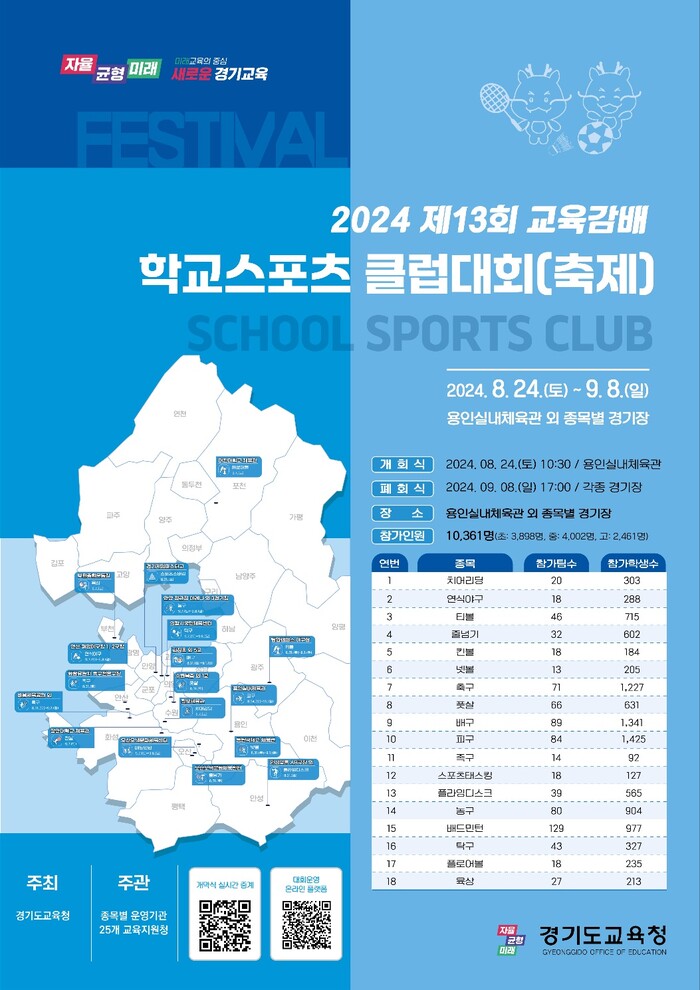 교육감배 학교스포츠클럽대회는 오는 9월8일까지 주말마다 도내 각 지역에서 열린다.
